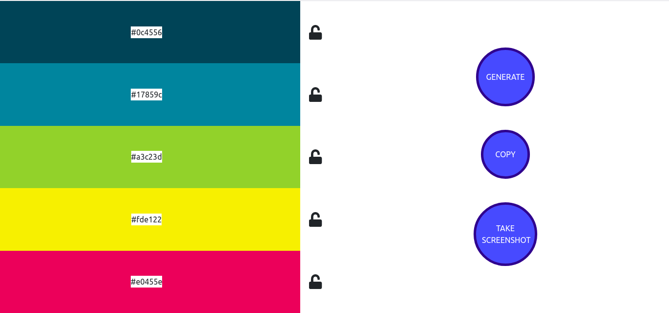 Generate a color pallete , lock specific colors and take a screenshot . ColorsPallete uses Advance AI API provided by colormind.Playmylist