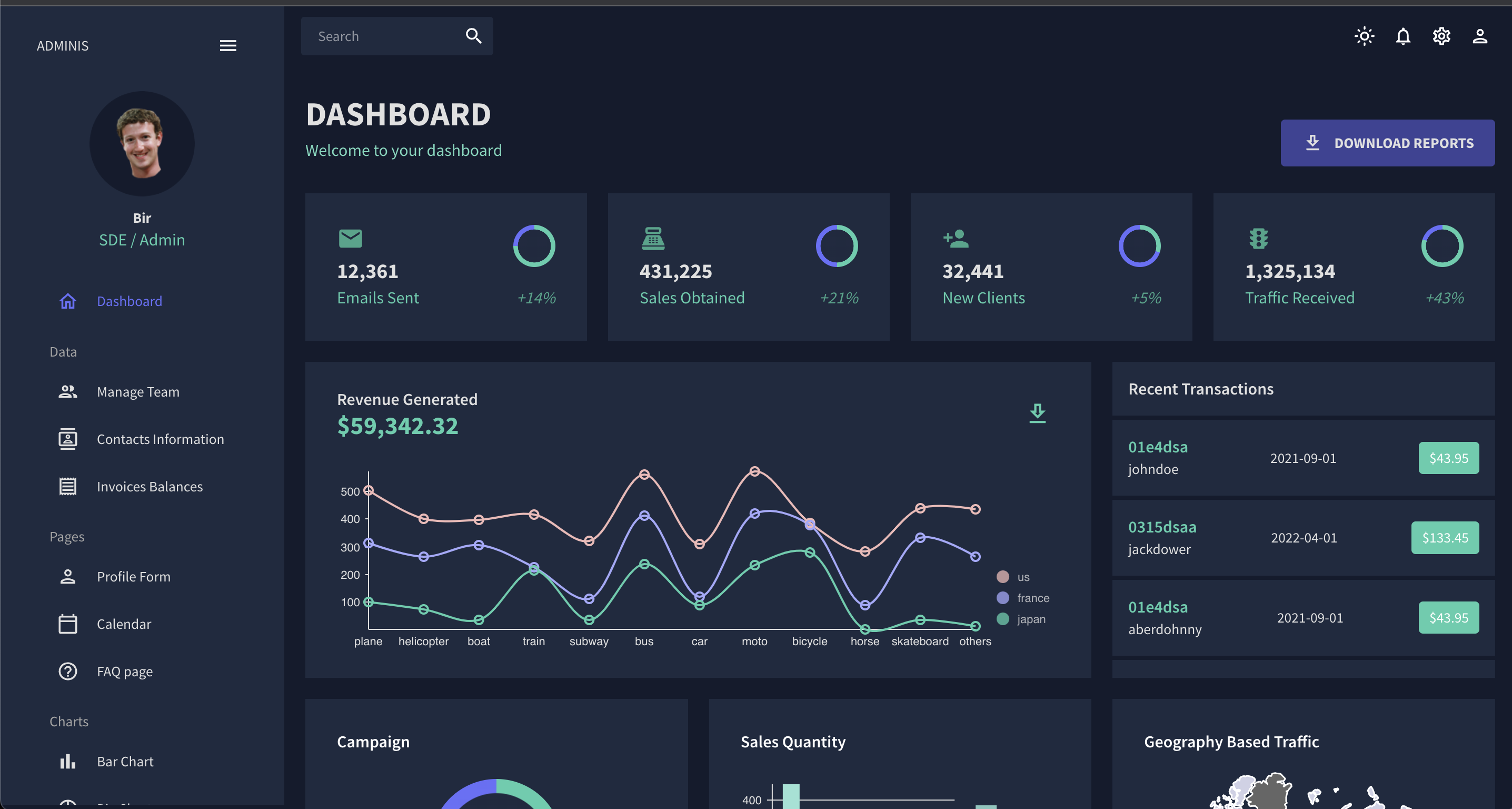 Dashboard made using react js , formik , nivo charts and material ui with support of calendar (where user can add day by day tasks)Portfolio Website